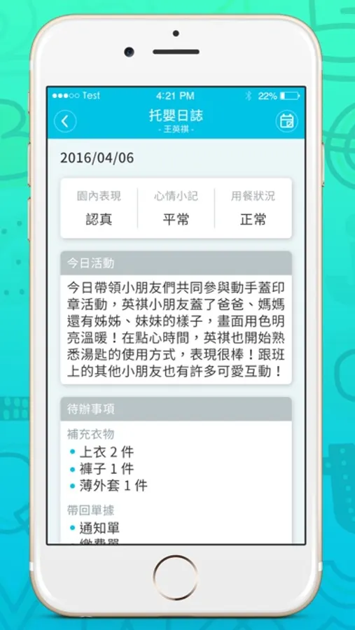 App需使用帳號/密碼登入始能使用,請您先與托嬰/幼兒中心確認是否已導入愛兒寶照護系統,並取得帳號之後開始使用。
