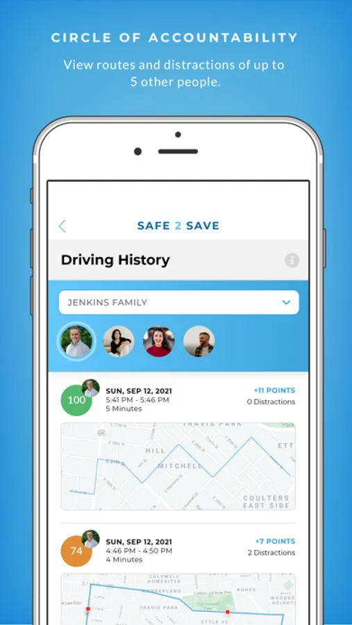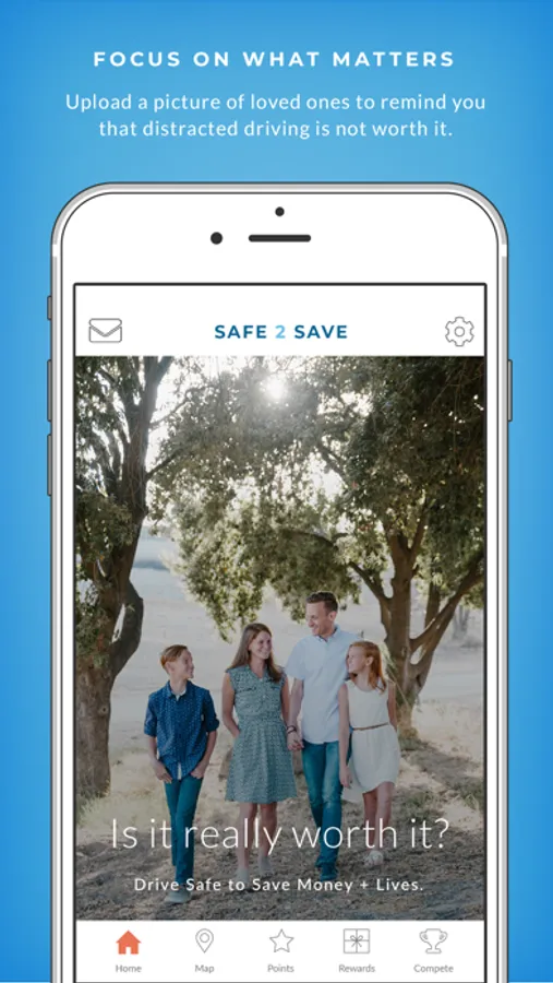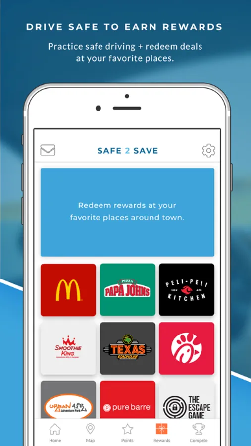 The SAFE 2 SAVE app motivates drivers to put away their phones while they drive by awarding them points that can be redeemed at their favorite restaurants and businesses.