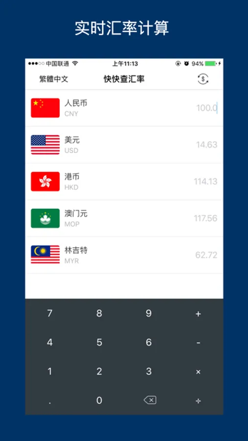 当你一开始使用快快查汇率,就能感受到它是如此不同:简洁优雅的界面、聪明的计算键盘、实时更新的汇率数据,多达全球 60 多种常用货币。