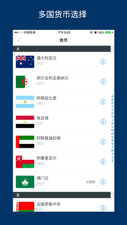 不用添加过多的货币,需要哪个选哪个,更可添加多个国家货币计算,减少对用户的干扰,做到简单且精美。