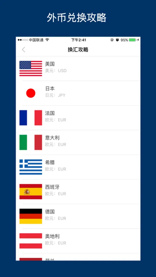 三十多个国家、地区的货币兑换攻略,方便用户找到最方便快捷的兑换方法,是旅行出游必备神器。