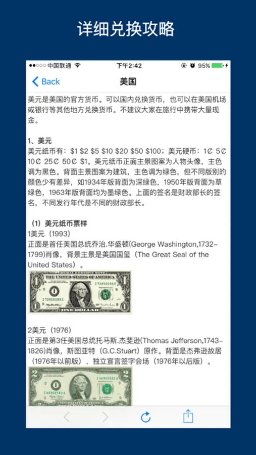各国现流通纸币,出国旅游购物可方便辨认是否该国货币,只需轻松点击即可查看。