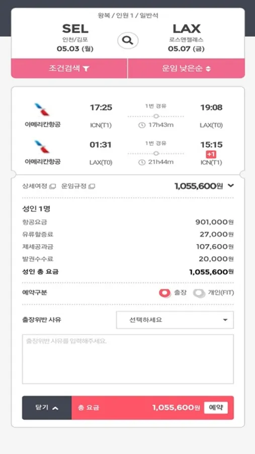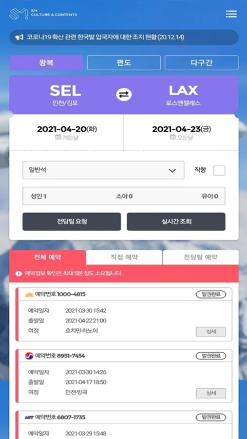 2. 출장 규정에 맞춰 항공편 조회 제공