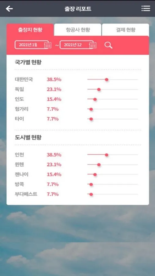 항공/호텔/출장지 정보,출장 현황 분석 등 출장에 필요한 모든 정보를 실시간으로