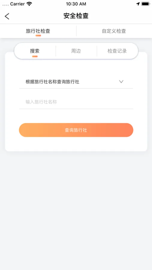 周边旅行社:查看周边旅行社信息,对周边旅行社进行安全检查、自定义检查