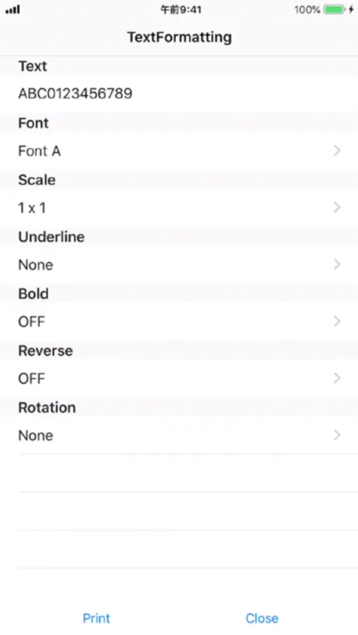 This app allows you to print text or barcode to Seiko Instruments Inc.'s(SII) mobile printer MP-A series using MP-A Print Class Library provided by SII.