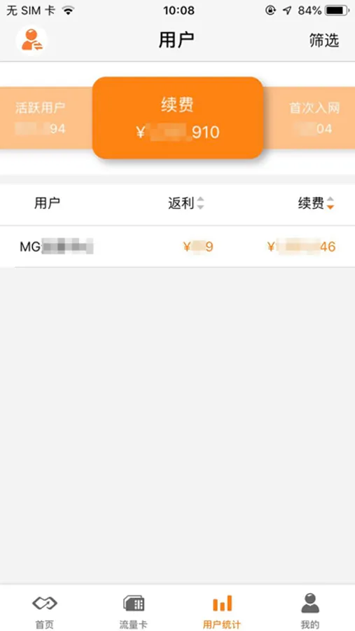 统计:提供渠道用户可查看流量卡用量统计、交易统计数据;