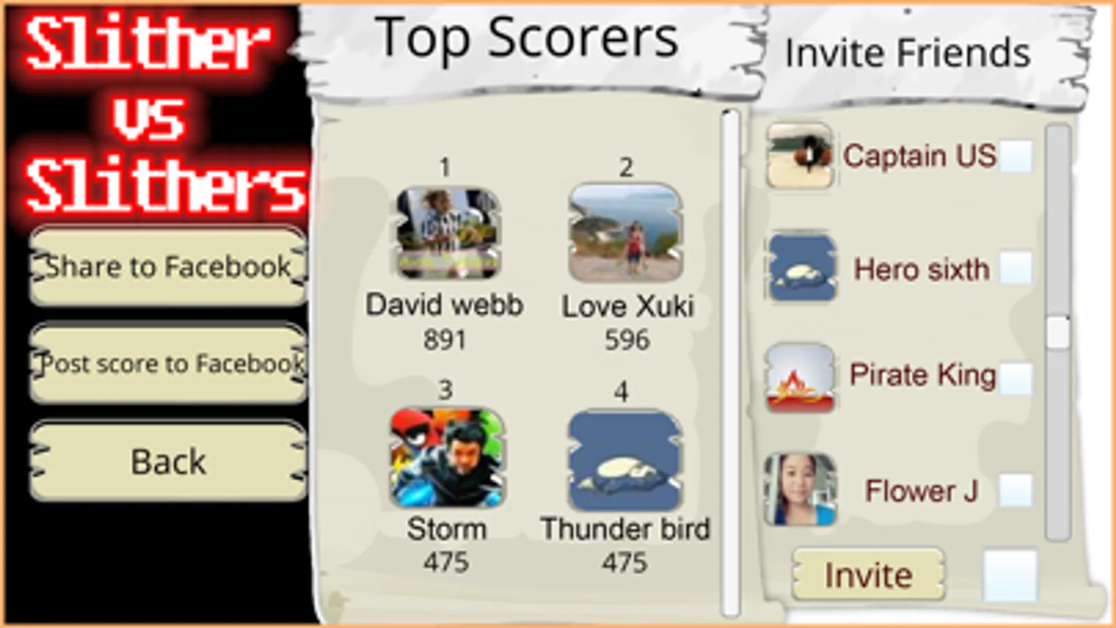 - Invite friend on Facebook to challenge them and become the winner