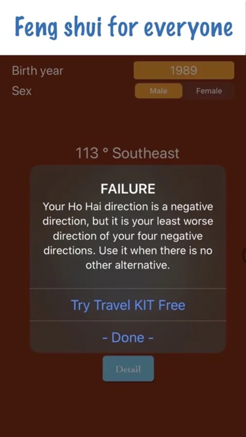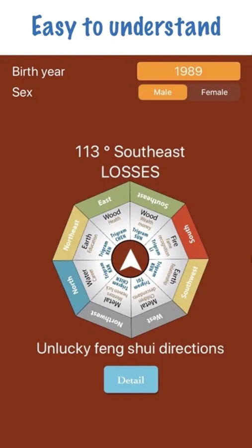 For each person exists FOUR favorable geographical directions and FOUR not favorable, depending on age, character and the date of its birth.