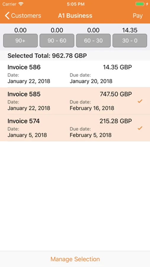 • Select invoices for payment