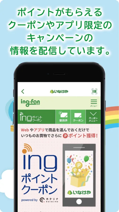 ing・fanクラブカード会員様は、カードの代わりにスマホに表示されたバーコードをご精算時にレジにてご提示いただけます。