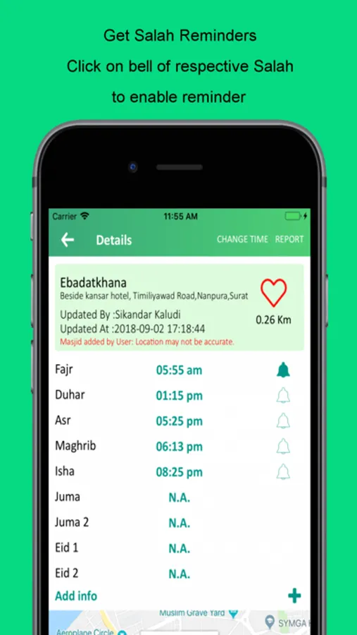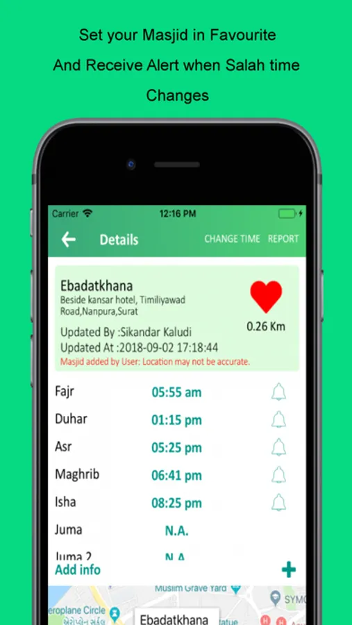 6. Receive notification (Alert) if Salah time of your favorite masjid changes.