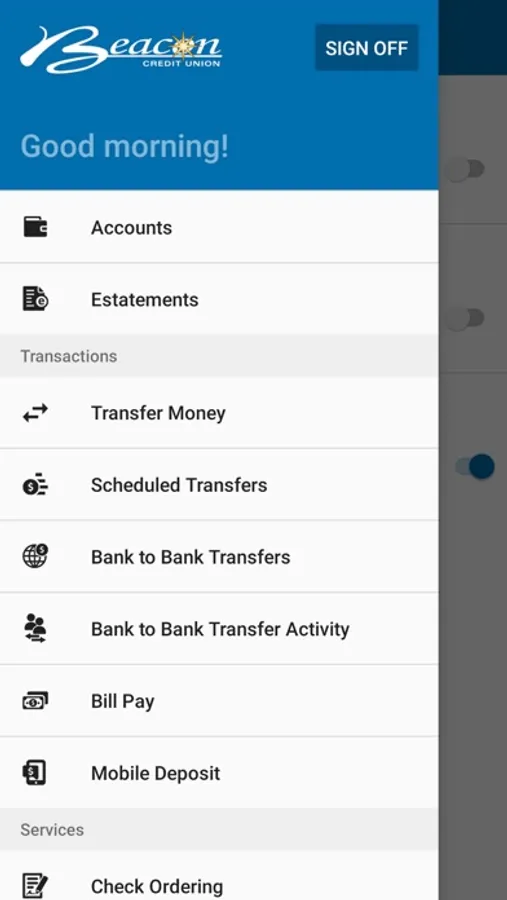 Beacon Mobile Banking allows you to check balances, view transaction history, transfer funds, and pay loans on the go!