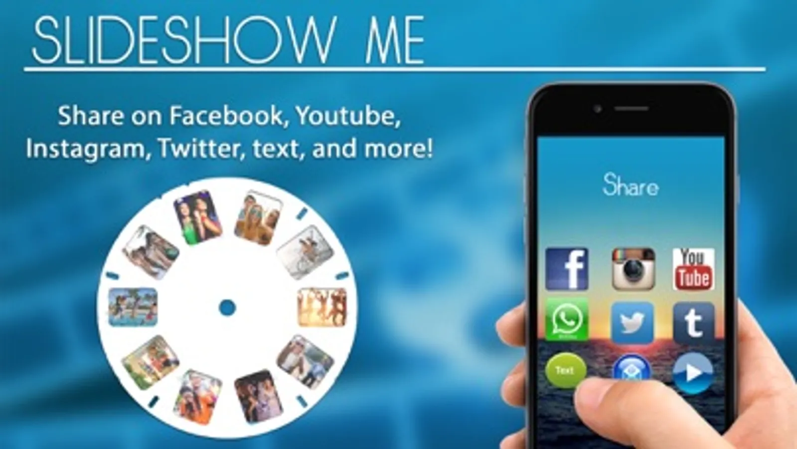 This is by far the EASIEST app to use to get a great slideshow without spending hours editing. The app saves your video to your gallery, and also allows for direct sharing through Facebook, Instagram, Youtube, Twitter, Email, Text, and more!