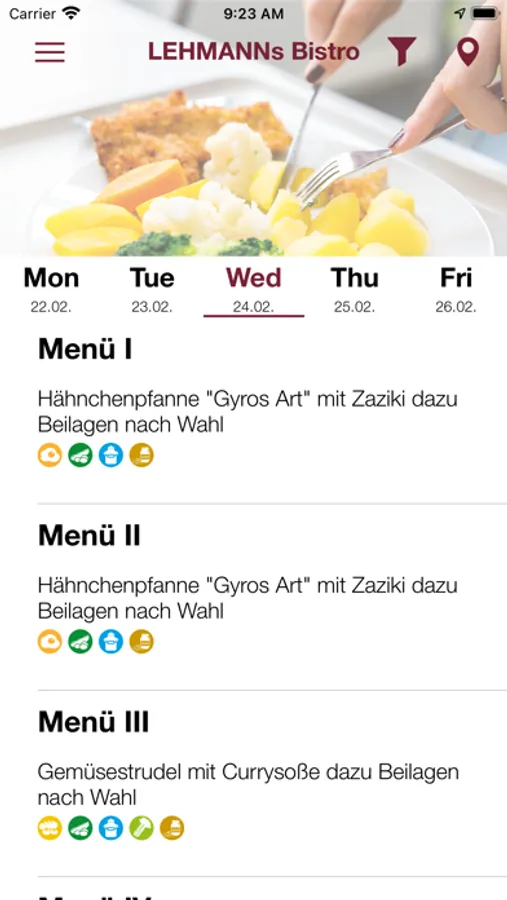 Der LEHMANNs Bistro Speiseplan ist von Beginn an eingerichtet. Besuchen Sie uns gerne in unserem Bistro und überzeugen Sie sich live von unserer Qualität.