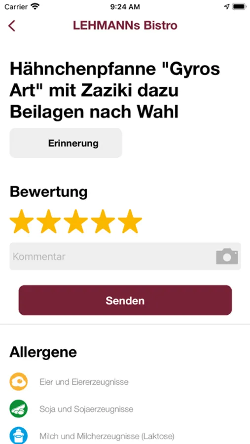 Mit Klick auf das Gericht oder die Komponente erhalten Sie zusätzliche Informationen zu Allergenen und Inhaltsstoffen. Dort haben Sie auch die Möglichkeit das Essen zu bewerten. Geben Sie uns gerne Feedback, damit wir unsere Rezepte stetig weiterentwickeln und verbessern können.