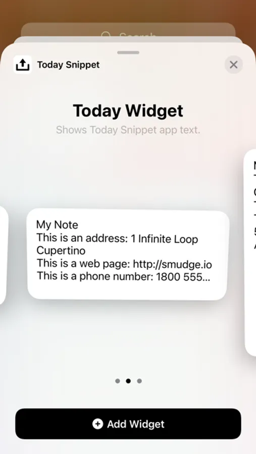 You can tap the Today Snippet Widget to go to the app where you can launch the appropriate app using hyperlinks detected in the text. Once you have finished with the text on the Today widget, you can overwrite it, or delete it.