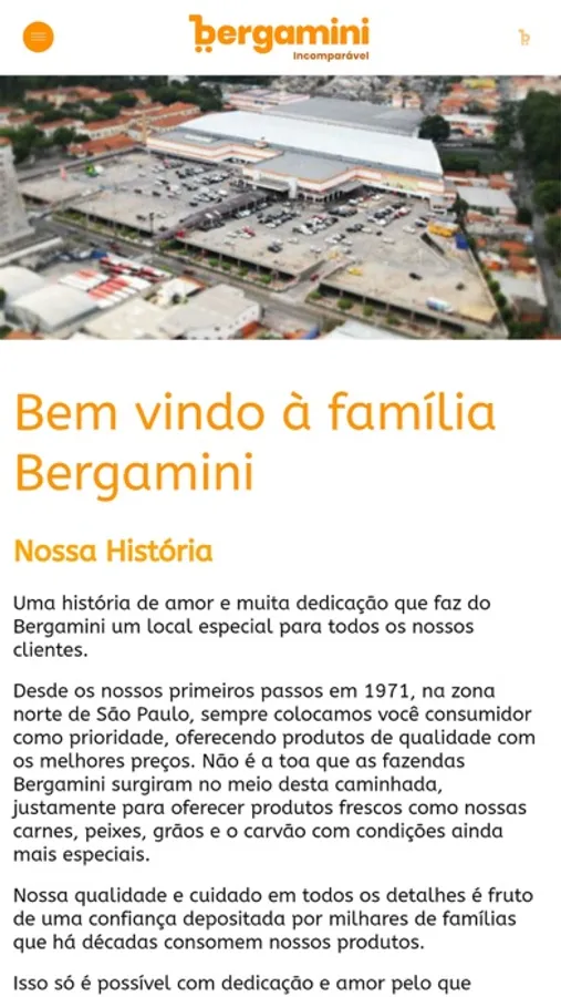 O Hipermercado mais querido da zona norte de São Paulo, além de oferecer os melhores preços da região, agora trás a facilidade de ter na palma da sua mão nossas ofertas, nossa rádio 24 horas com promoções, e possibilidade de comprar produtos exclusivos com a marca Bergamini.