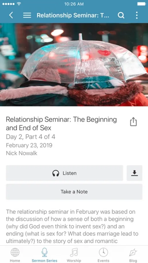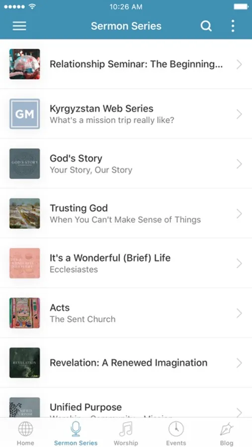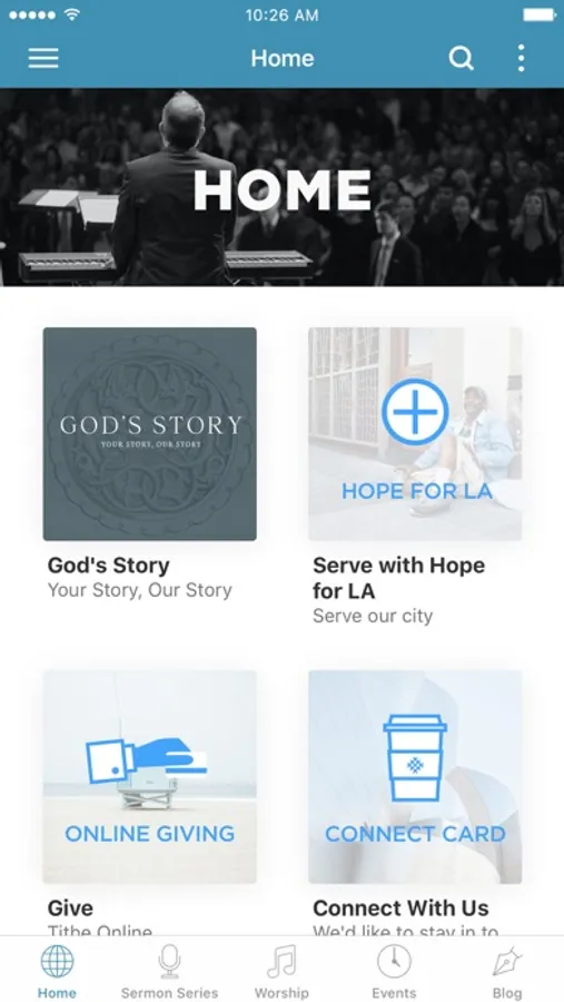 Dive into all sorts of interesting content, including sermons, worship, blogs, and events, and share it with friends via Facebook or email.