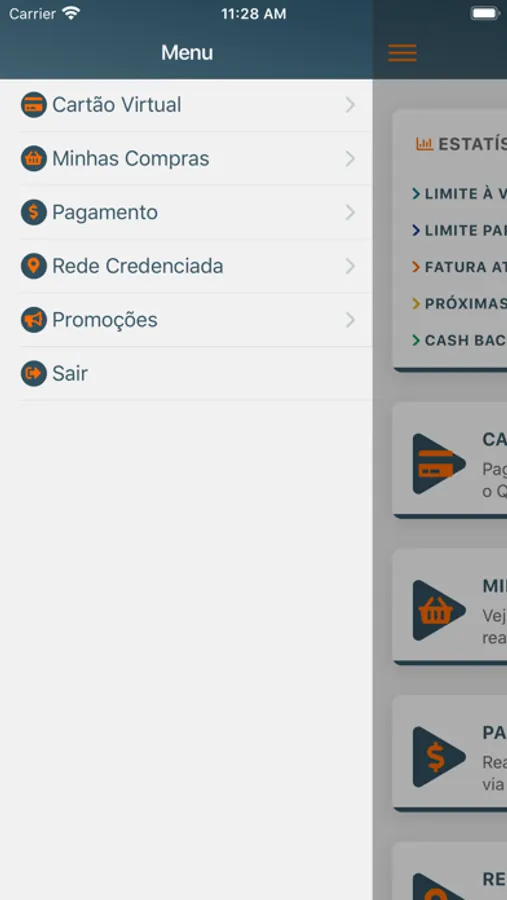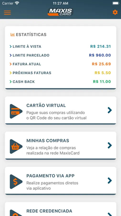 Acompanhe o seu saldo, limite e histórico de compras de um jeito bem simples e intuitivo.