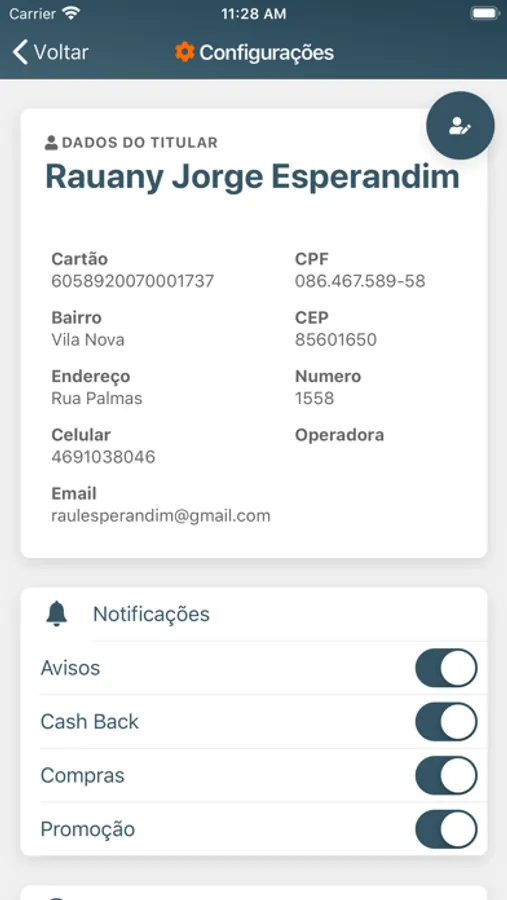 O sistema de notificações permite que você fique por dentro das campanhas e promoções realizados pelos estabelecimentos credenciados, bem como a informação em tempo real de suas compras e lançamentos