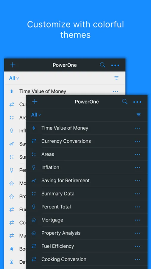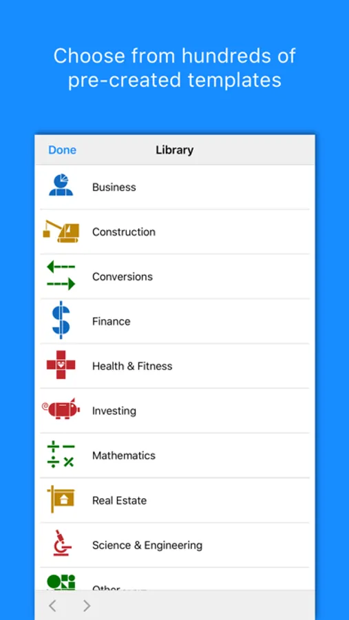 • Get up and running fast with hundreds of pre-created templates in PowerOne's extensive library. Covers everything: finance, conversions, real estate, business, investing, construction, engineering, health, fitness, and more.