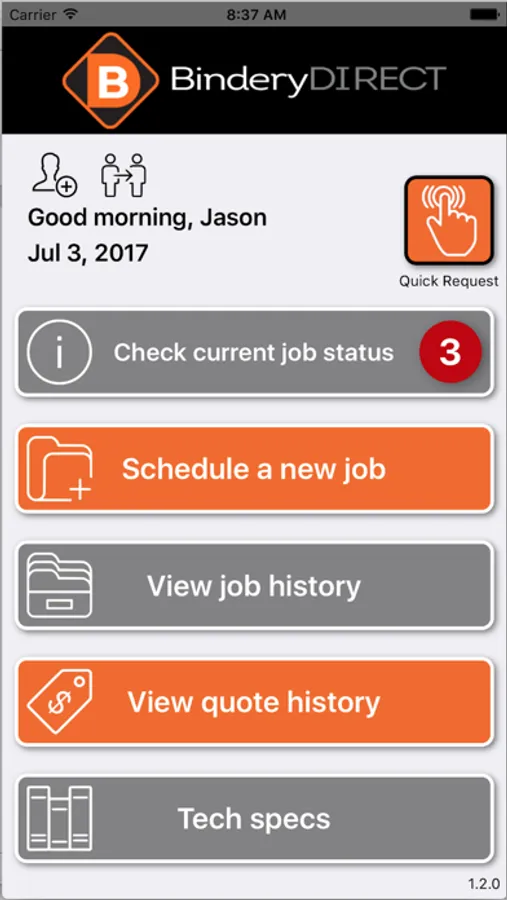 This app enables users to quickly check the status of current and past jobs at The Bindery, Inc.. Features include real-time progress reports, lists of current and completed jobs, and shipping/receiving dates. Users may also view current and past job numbers, PO numbers, order quantities, as well as information concerning quotes, delivery receipts, and invoices.