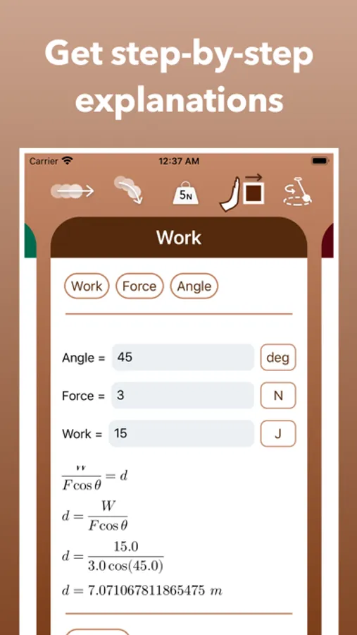 PhysicsProf is an app that solves physics problems. Simple steps, just put the knowns and the unknowns, set their values, and click 'Solve' .. and you shall get the answers right away ;) You can also view the solution step-by-step, change units, and many more features!