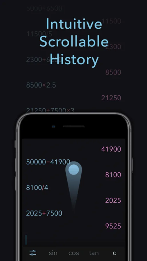 - Intuitive scrollable history, which saves your entries even if the app is closed