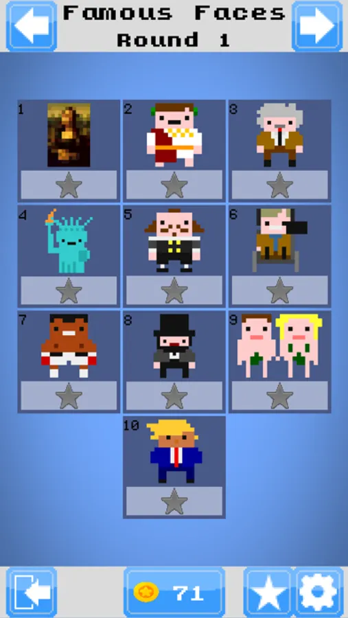 Categories include Famous Faces, Music, Americans, Film&TV, Books and Myths&Legends.