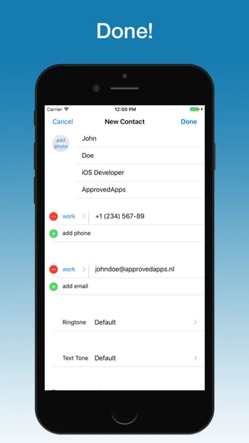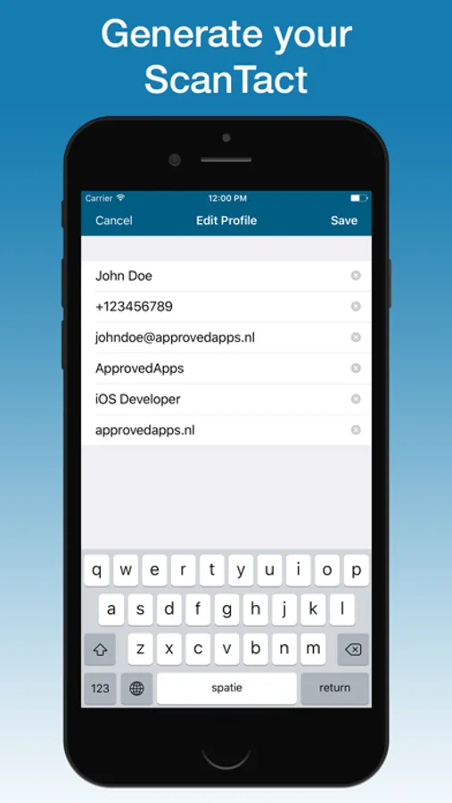 ScanTacts is the new way of exchanging contact info by using a QR business card. No more hassle with old fashion paper business cards or fiddling with phones to add someone to your phone. Just scan the others generated QR business card with the built-in scanner and you're done!