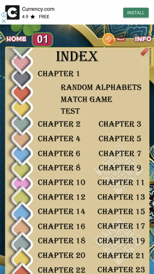 It is for persons who know Hindi or Urdu language. it has sound for each chapter. It also has a matching game for alphabets. It has a test page.