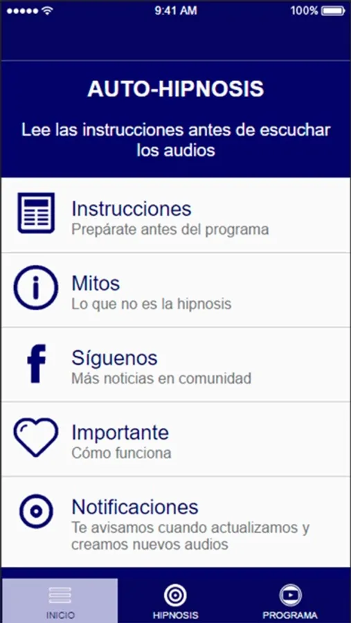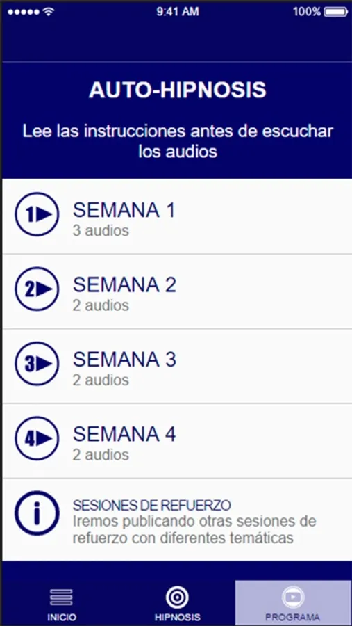 - Instrucciones detalladas de cómo hacer las sesiones de hipnosis