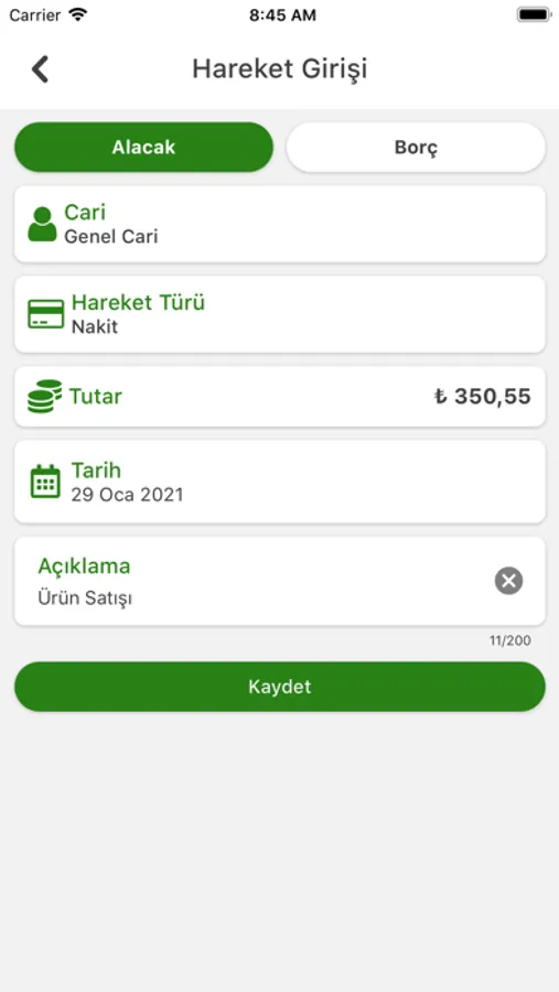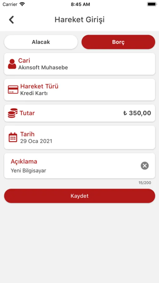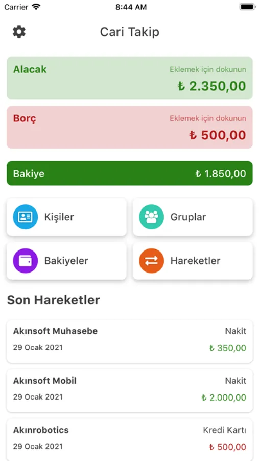 Kullanımı çok kolay cari takip yazılımıdır. Tanımladığınız carilere borç - alacak girişi yaparak hareketlerini ve bakiyelerini takip edebilirsiniz.