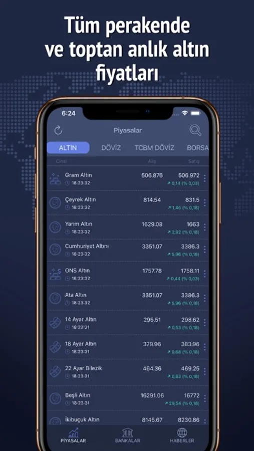 Altın Fiyatları uygulaması, merkez bankası, serbest piyasalar ve diğer bankaların verilerini kullanmaktadır.