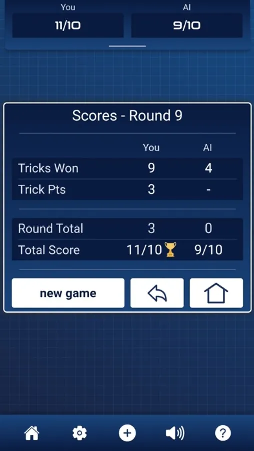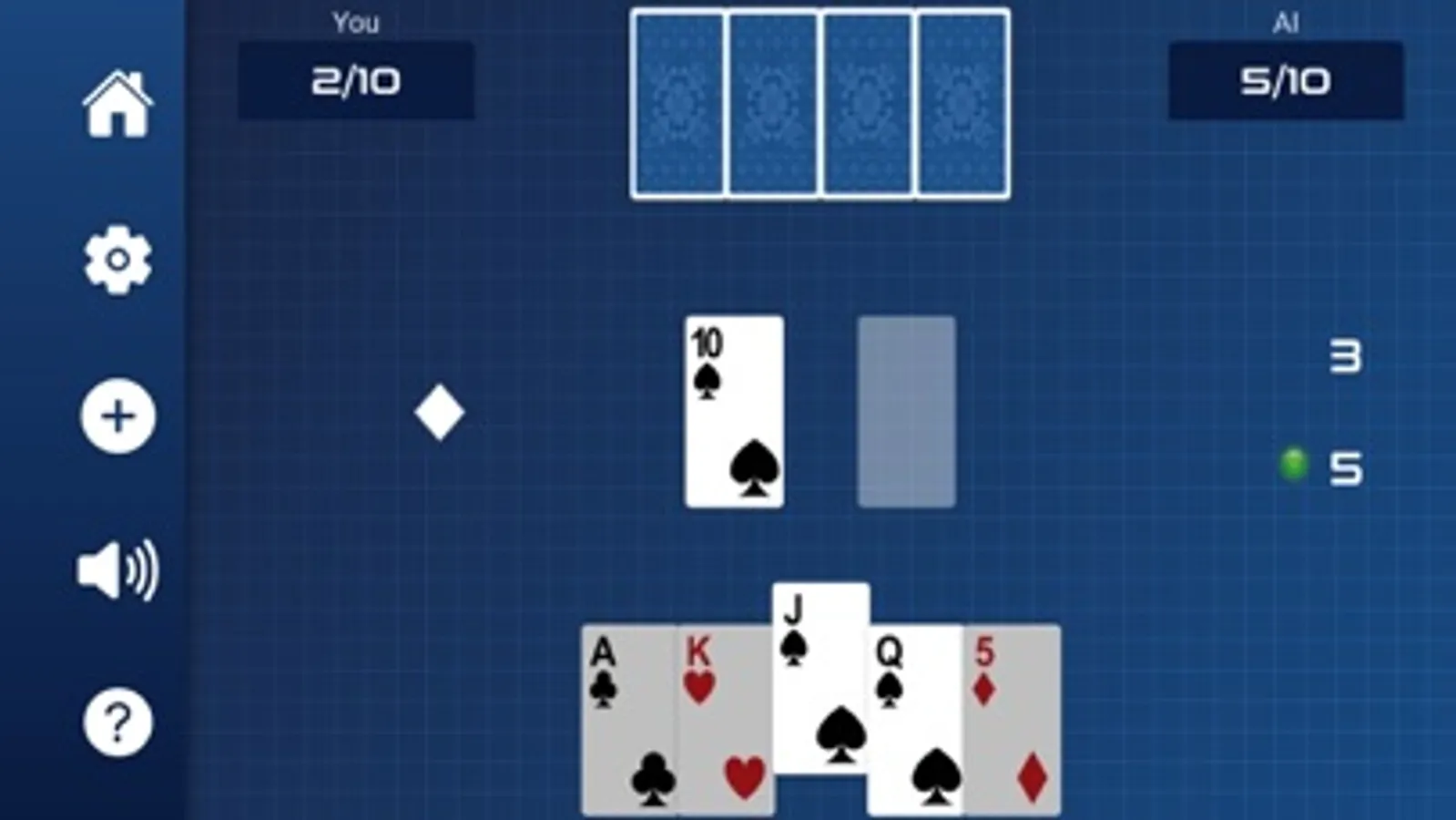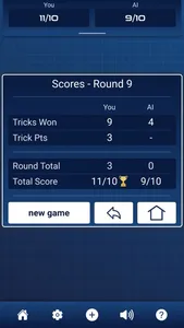 The aim of the game is to take more tricks than your opponent. The winner is the first player to reach the win target, either 10, 25 or 50 points. Make sure to track your all time and session stats to follow your improvement as you learn!