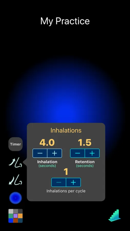 - Configurable timer for the in-breathe, out-breathe and retentions