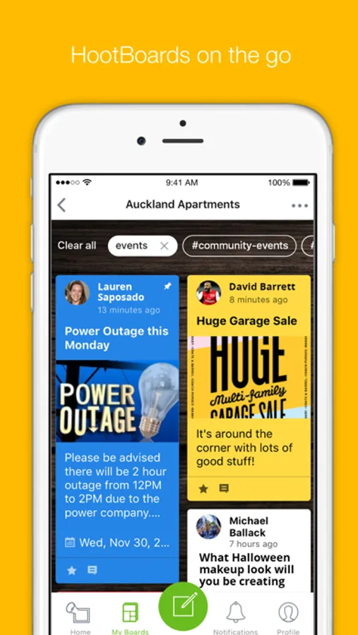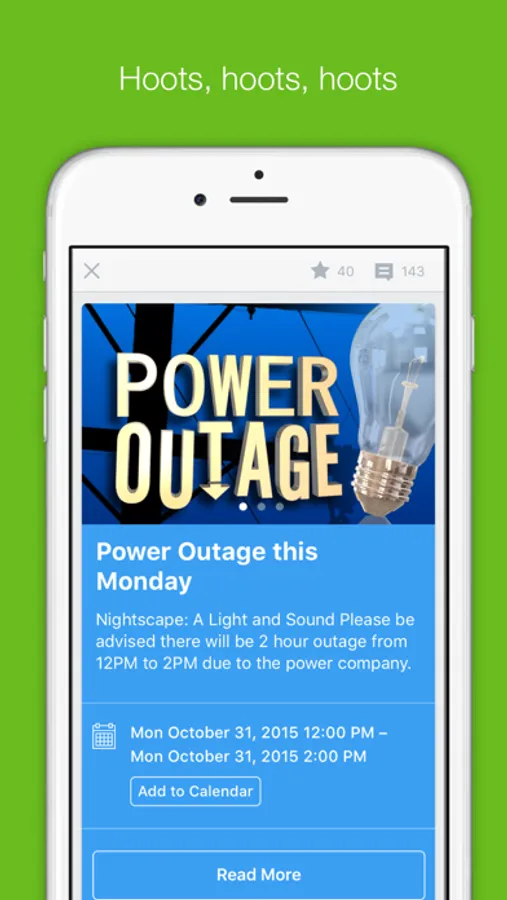 - View all the hoots on your board. If it's an event you can add it right to your calendar.