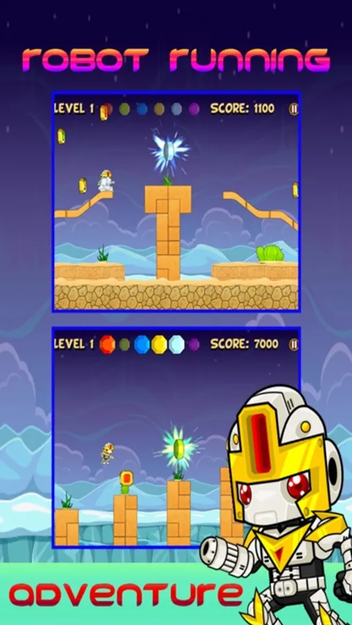 Run and jump over the ruins in the desert, while collecting gems and gold coins to increase your score and dash towards the finish of every level.