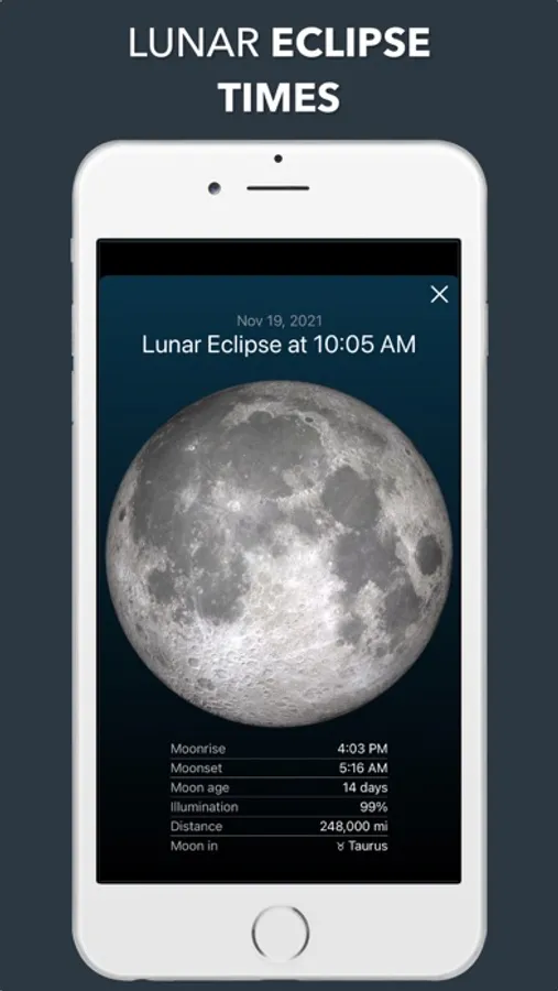 The app also support notifications for Full Moon, New Moon and Lunar Eclipses.