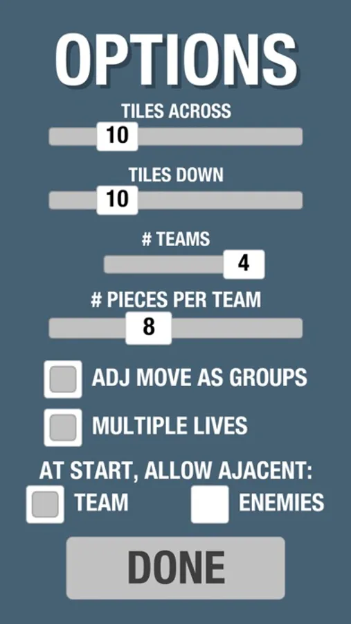 A unique board game that uses Rock/Paper/Scissors to determine battle outcomes. Pass-and-play, hex-based board game for 2 to 4 players, in which players use strategy and luck to beat their competitors. Explore countless gameplay configurations in the Options menu - from board dimensions, to multiple lives, to adjacent tiles of the same team sticking together as clusters.
