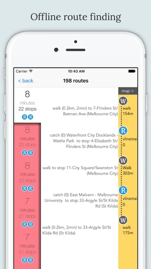 The only app to feature offline route finding as well, so even if you don't have internet, we can help you get anywhere you need to go.