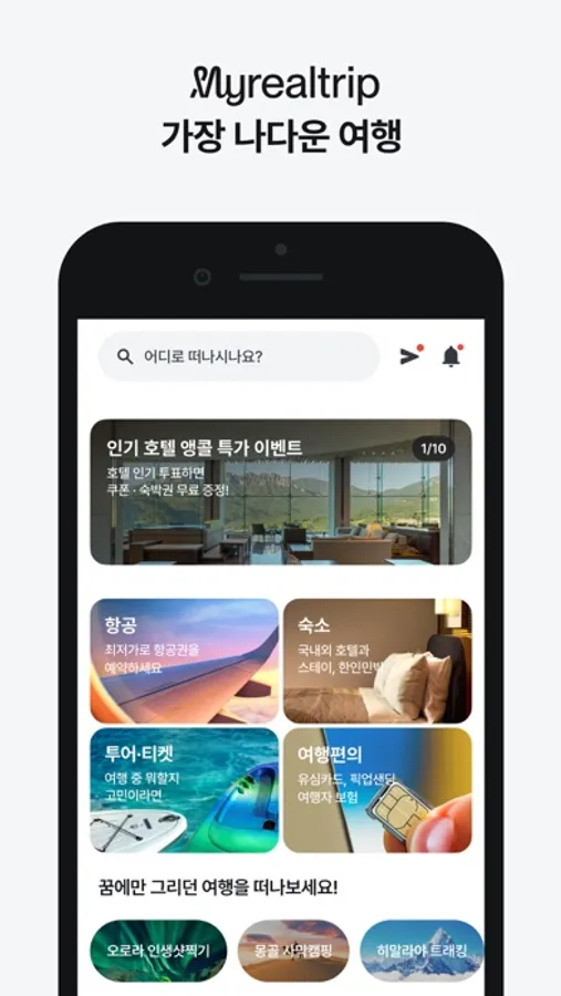 지친 일상을 벗어나 여행지에서 살아보세요.