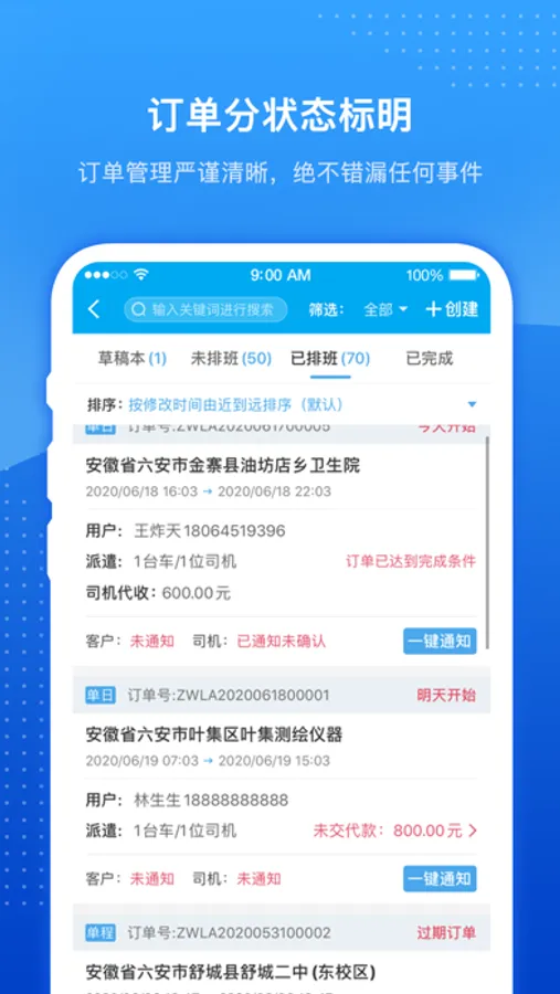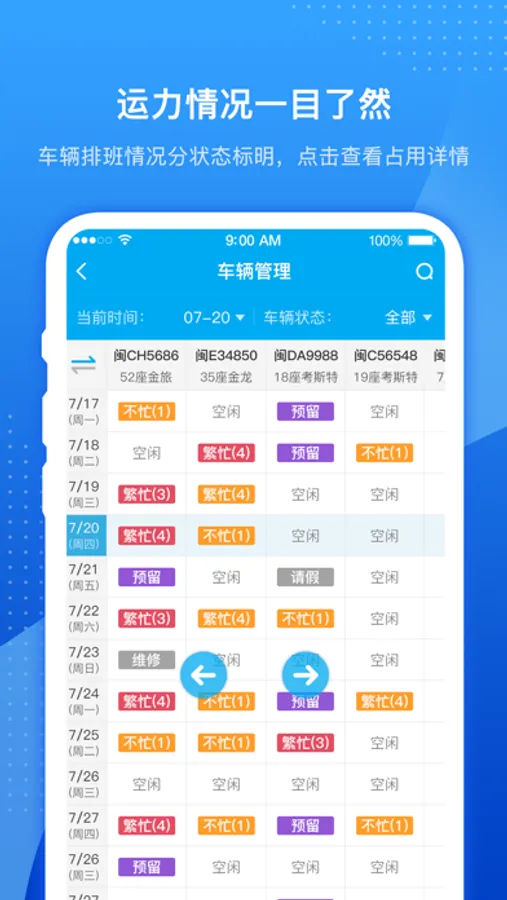 1.排班看板:车辆忙与不忙6项标识,运力情况一目了然