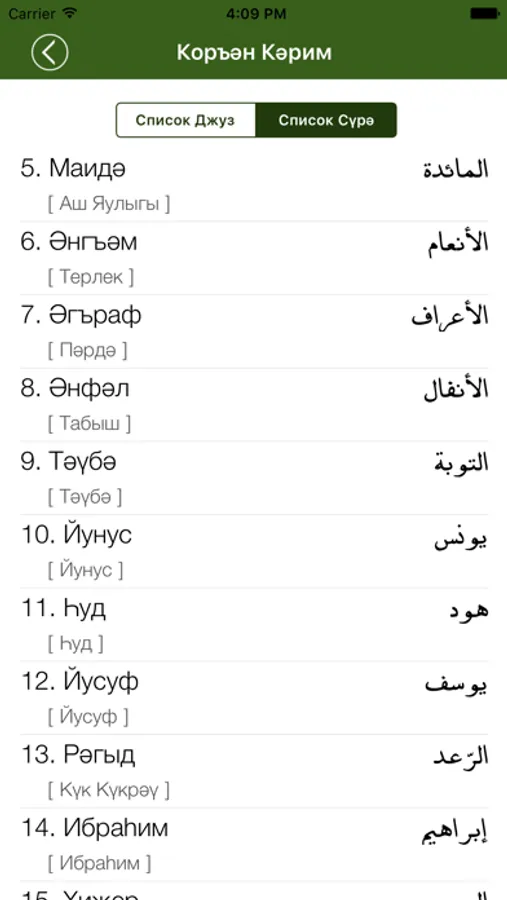 4. Hafizi Коръән (Juz/Джуз & Sura/Сүрә List)