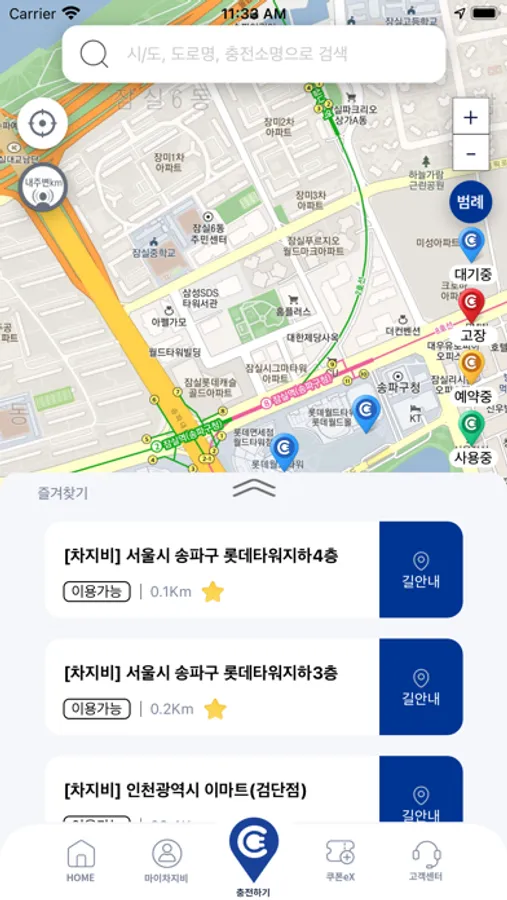 2. 내비게이션: 티맵 기반으로 충전기까지의 위치를 자동 안내하는 내비게이션 연동 기능을 탑재하였습니다.