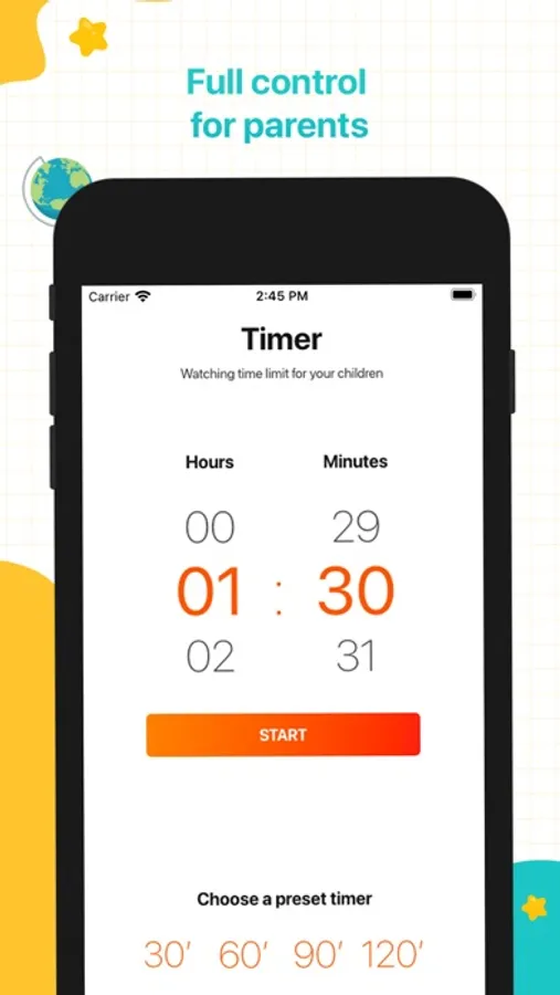 - A timer helps you set your kid’s screen time and balance the time allowed to watch videos on the app with other family activities.