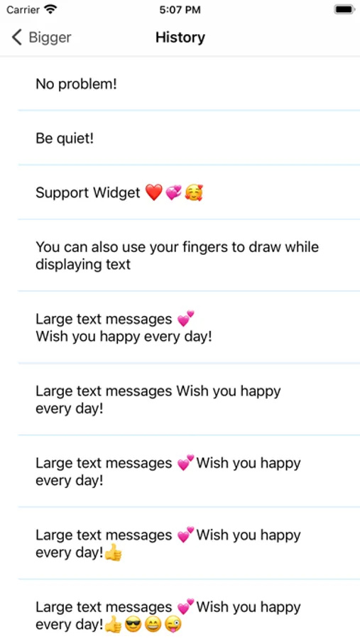 Open the app, type in your message and make it big. In noisy places (crowded bars, noisy workplace, malls), there is no need to shout to communicate; in quiet places (libraries), there is no need to make noise; people with hearing impairments (deaf) can also communicate fast and easy.