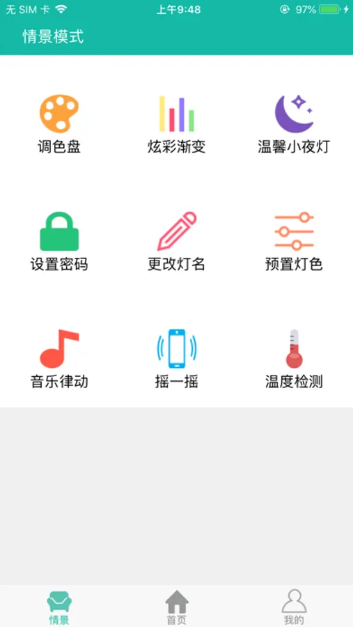 2.【调光调色】:滑动调色板,控制灯光颜色,享受指尖色彩流动的快感;