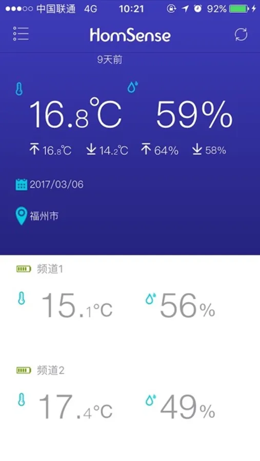 HomeSense通过网络与蓝牙温湿度设备连接,可以通过手机获取各频道温度湿度情况。